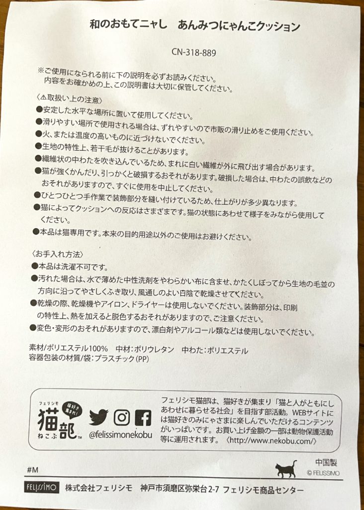 I finally purchased the “Anmitsu Nyanco Cushion” from Felissimo that I had wanted for a long time.