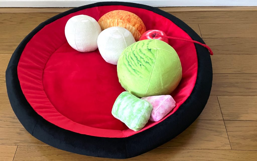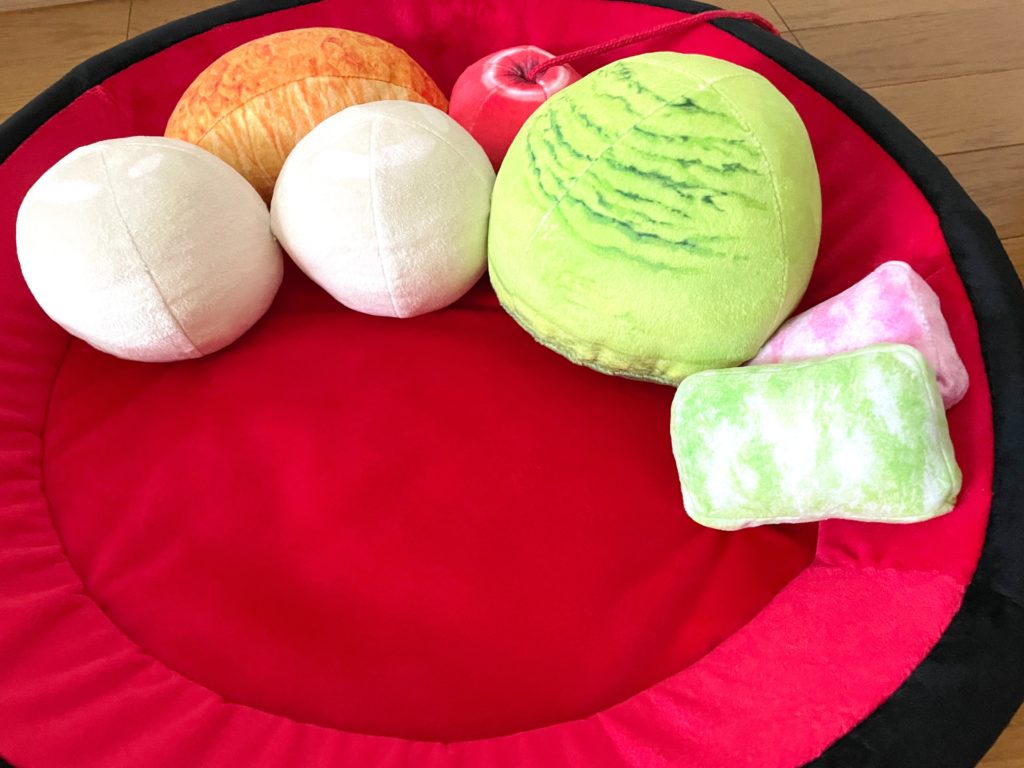 お餅やみかんのクッションは布地も縫い目もしっかりしています。