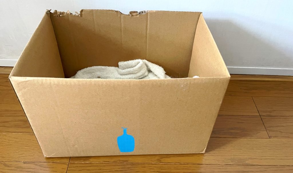 これまで入っていた、ブルーボトルの段ボールベッドは